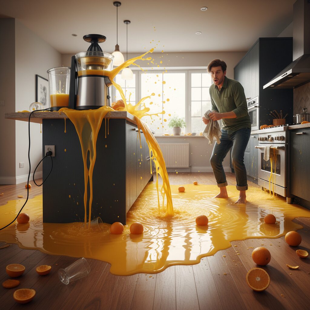 Představte si klidné ráno, které se náhle změní v domácí katastrofu: Bez varování se váš odšťavňovač rozhodne proměnit vaši kuchyň ve skutečnou šťávovou koupel. Ne, nejedná se o experiment pro znalce smoothie, ale o domácí chybu, kdy se zdánlivě nevinný boj mezi nápojem bohatým na vitamíny a elektrickou bezpečností vaší kuchyně vyhrotí v titánskou bitvu, nebo spíše v plnohodnotný souboj. Únik šťávy, tento zákeřný jev, se objeví tam, kde byste to nejméně čekali, a zanechá vám litry nekontrolované tekutiny bohaté na vitamíny. Toto malé domácí drama je ve skutečnosti výbušným koktejlem vadných spotřebičů, chybné instalace a nedostatečné údržby odšťavňovače: perfektní příběh pro frašku, s trochou černého humoru, který katastrofu podtrhuje. Tento nepravděpodobný příběh je však založen na skutečných událostech, protože odšťavňovače nejsou vždy těmi zachránci při snídani, za které si myslíme. V této zředěné epizodě: jak může odšťavňovač citrusů náhle zaplavit vaši kuchyň? A co je nejdůležitější, co nás toto fiasko učí o výběru elektrického odšťavňovače a jak předejít šťávové katastrofě hodné akčního filmu? Rozebereme složitosti rozlité šťávy, seznámíme se s technologií, která stojí za tímto výbušným jevem, pochopíme rizika spojená s elektrickou bezpečností a nakonec se naučíme, jak rozlitou šťávu uklidit. Držte se pevně, protože koupelna na tohle není určená!